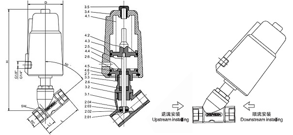 進口內螺紋氣動角座閥主要技術參數(shù)
