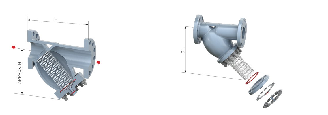 進(jìn)口蒸汽Y型過濾器是輸送介質(zhì)的管道系統(tǒng)不可缺少的一種過濾裝置,Y型過濾器通常安裝在減壓閥、泄壓閥、定水位閥或其它設(shè)備的進(jìn)口端,用來清除介質(zhì)中的雜質(zhì),以保護(hù)閥門及設(shè)備的正常使用。Y型過濾器具有結(jié)構(gòu)先進(jìn),阻力小,排污方便等特點(diǎn)。Y型過濾器適用介質(zhì)可為水、油、氣。一般通水網(wǎng)為18~30目,通氣網(wǎng)為10~100目,通油網(wǎng)為100~480目。 籃式過濾器主要由接管、主管、濾藍(lán)、法蘭、法蘭蓋及緊固件等組成。當(dāng)液體通過主管進(jìn)入濾藍(lán)后,固體雜質(zhì)顆粒被阻擋在濾藍(lán)內(nèi),而潔凈的流體通過濾藍(lán)、由過濾器出口排出。