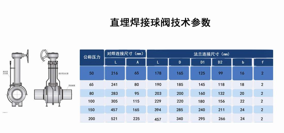 進口長桿直埋式全焊接球閥技術參數(shù)