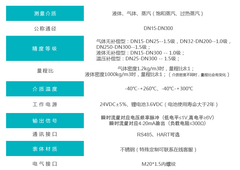 進(jìn)口渦街流量計(jì)技術(shù)參數(shù)