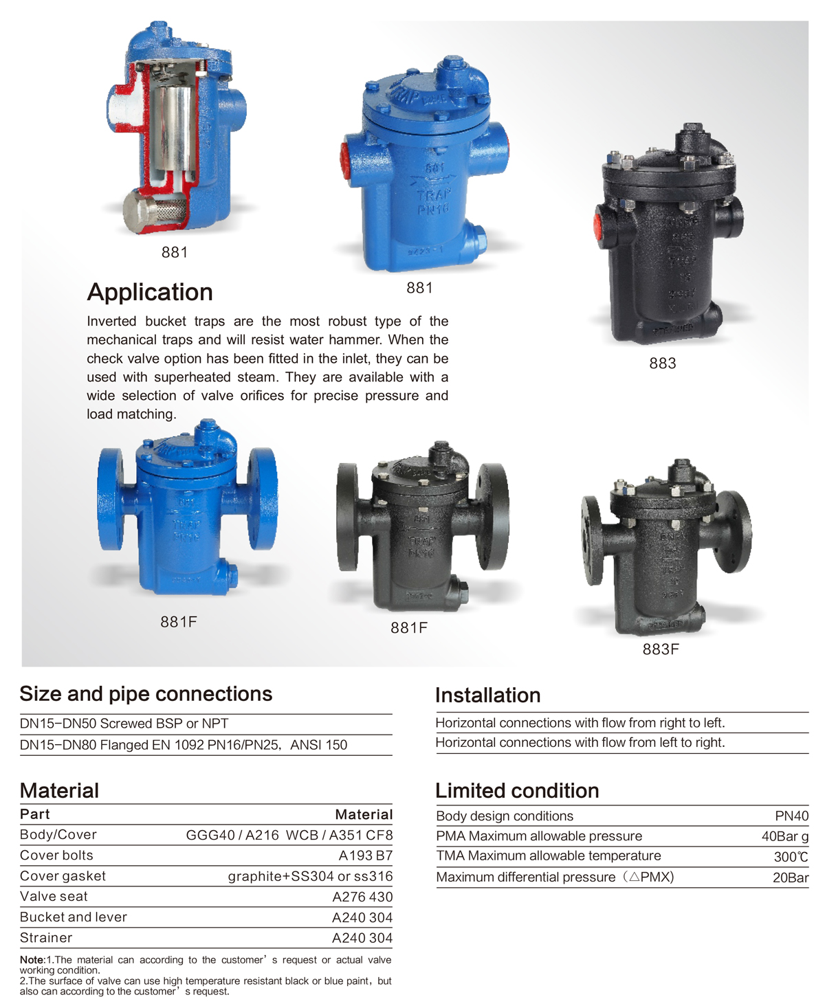 進口進口法蘭疏水閥的開啟和關閉是根據(jù)凝結水和蒸汽的密度并來動作的,工作動作準確,可靠。其性能特點為:能夠連續(xù)又能間歇排放飽和凝結水加熱設備不會有水積聚,從而獲得高的熱效率;耐水擊倒置桶結構不會因水擊而遭到損壞,使用壽命長;排空氣性能好倒吊桶上設有溢出排氣孔,可有效地預防蒸汽氣鎖和空氣氣堵;允許背壓率達85%;維修方便內(nèi)部零件采用不銹鋼制造,均安裝在閥蓋上,并設有過濾網(wǎng)裝置,日常維護方便。廣泛用于石油、化工、電力、印染紡織、醫(yī)療、醫(yī)藥等行業(yè)的各種蒸汽加熱設備、蒸汽管網(wǎng)和低過熱蒸汽工況。能夠迅速排除凝結水,有效地組織蒸汽泄漏。