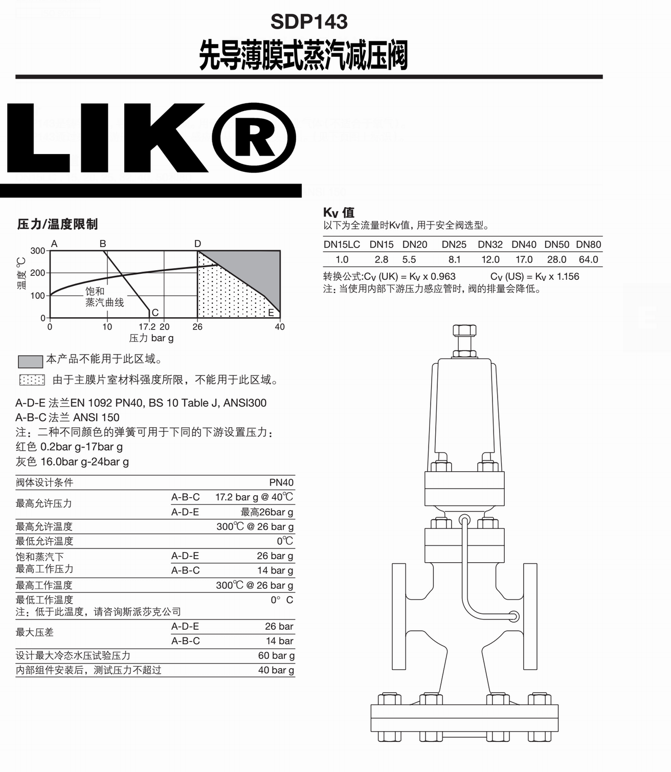 進(jìn)口先導(dǎo)薄膜式蒸汽減壓閥采用先導(dǎo)閥控制+大膜片執(zhí)行的雙級(jí)結(jié)構(gòu),通過感應(yīng)下游壓力變化自動(dòng)調(diào)節(jié)主閥開度,實(shí)現(xiàn)蒸汽壓力的精準(zhǔn)穩(wěn)壓。其核心優(yōu)勢(shì)在于高精度控制(±0.5%~1.5%)和大流量適應(yīng)性(DN150閥體流量達(dá)25t/h@4MPa)。典型應(yīng)用壓力范圍0.02~6.4MPa,耐溫最高450℃。