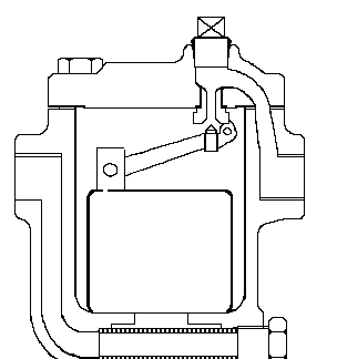 倒吊桶式疏水閥內(nèi)部是一個倒吊桶為液位敏感件,吊桶開口向下,倒吊桶連接杠桿帶動閥心開閉閥門。倒吊桶式疏水閥能排空氣,不怕水擊,抗污性能好。過冷度小,漏汽率小于3%,最大背壓率為75%,連接件比較多,靈敏度不如自由浮球式疏水閥。因倒吊桶式疏水閥是靠蒸汽向上浮力關(guān)閉閥門,工作壓差小于0.1MPA時,不適合選用。